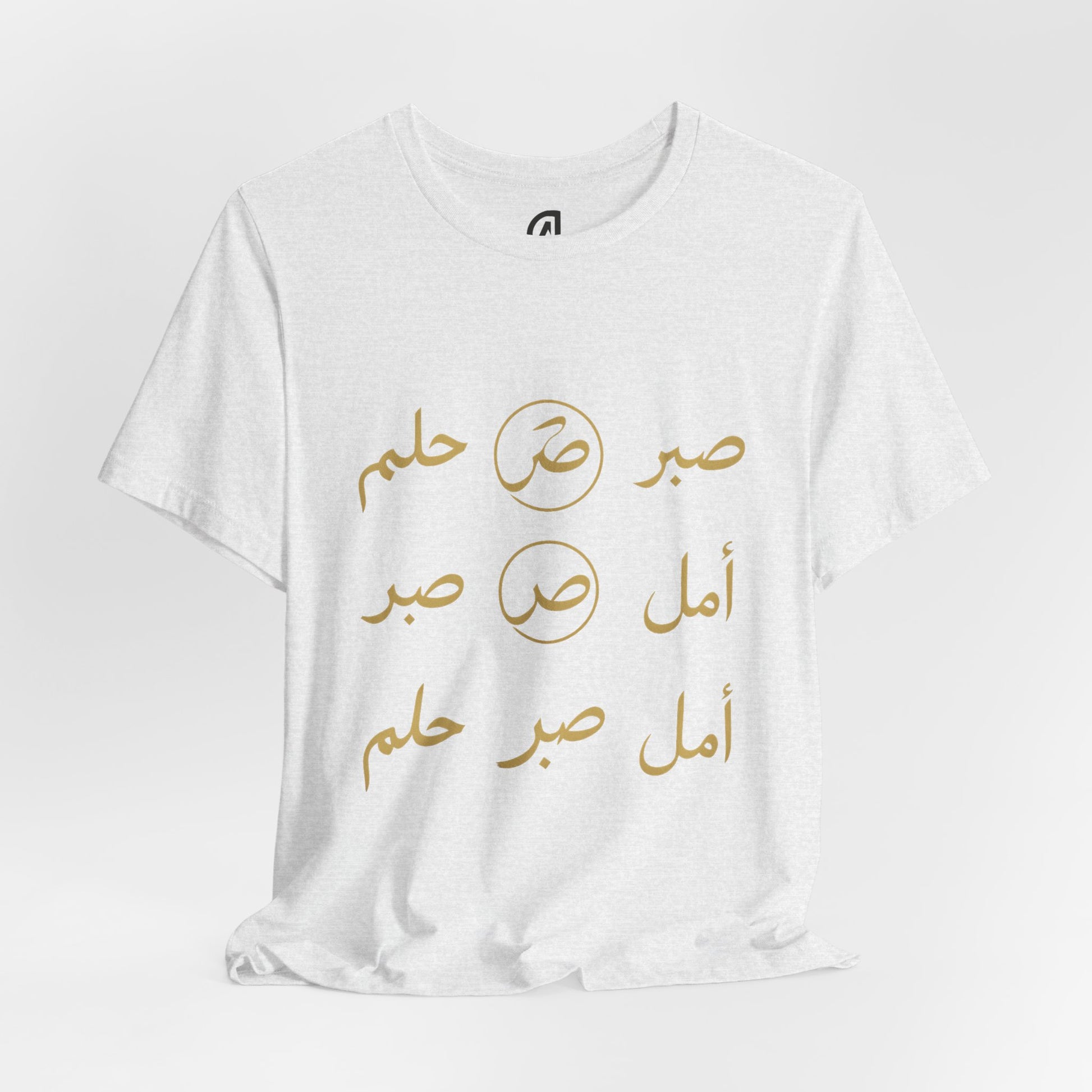 Arabic Calligraphy Tee — 'صبر أمل حلم' Inspirational White T-Shirt