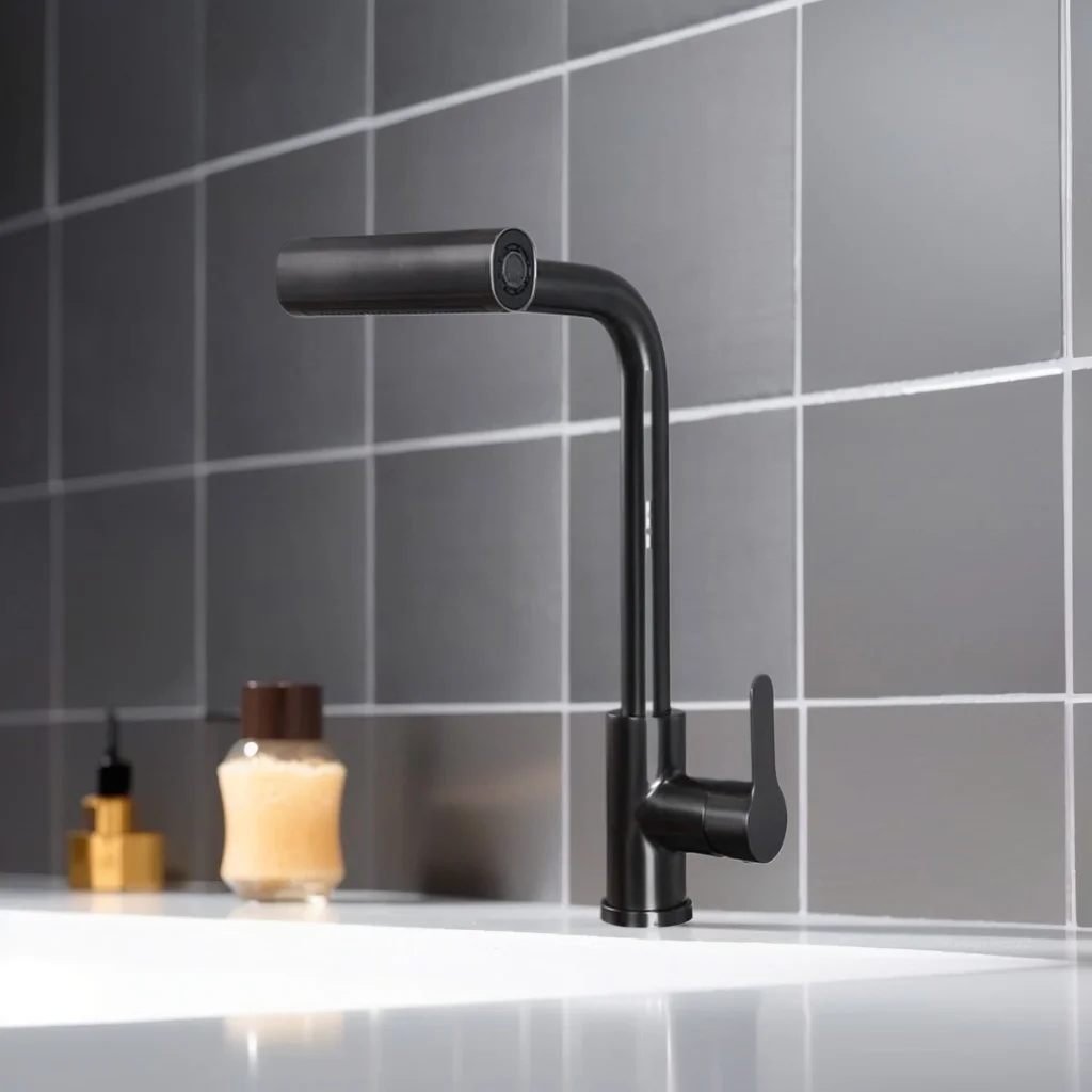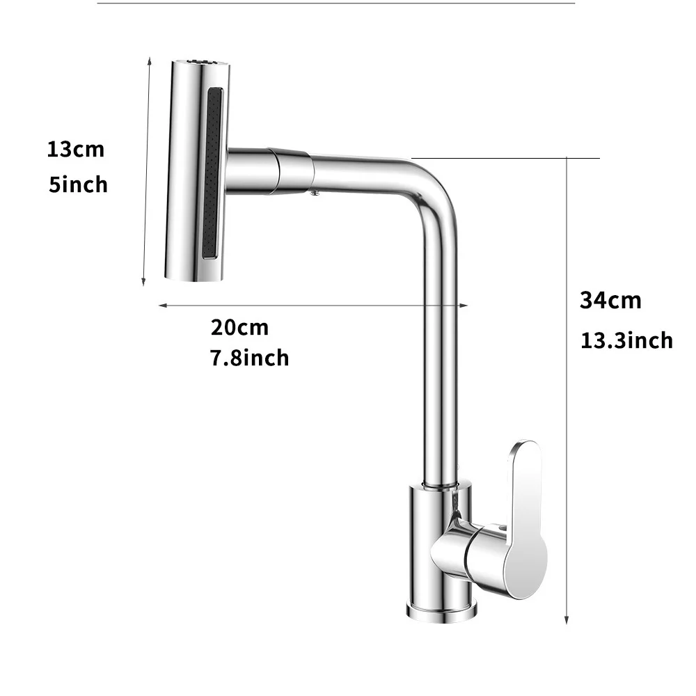 Stainless Steel Kitchen Faucet with 4 Water Flow Modes - 360° Rotating Ceramic Valve, Brushed Finish, Hot & Cold Water Control f
