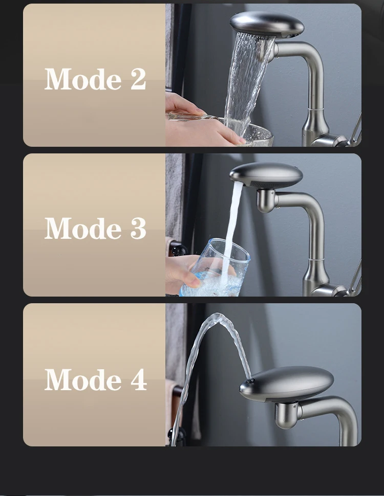 Universal Stainless Steel Faucet 360°Rotation Multifunction 4 Modes Stream Sprayer Hot Cold Water Sink Mixer Tap For Washbasin